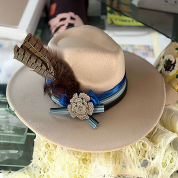 Every hat that leaves Hatchett Creek Creations carries a story—crafted by hand, inspired by nature, and made to celebrate individuality. From vintage brooches and velvet ribbons to pheasant feathers and leather cord, each detail is thoughtfully chosen and artfully placed. No two pieces are ever the same, making each hat a one-of-a-kind expression of spirit and style.
